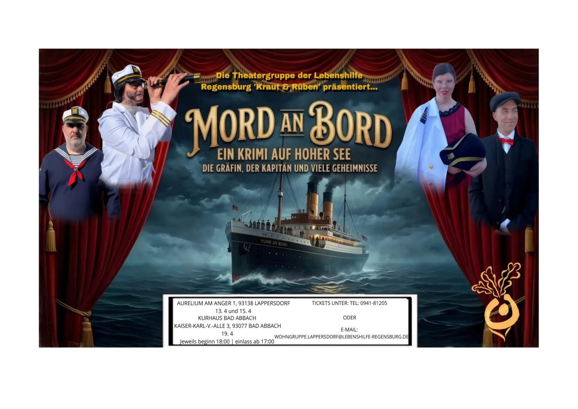 Dieses Jahr begibt sich die Theatergruppe „Kraut und Rüben“ der Regensburger Wohnstätten mit dem Stück „MORD an BORD“ auf hohe See.